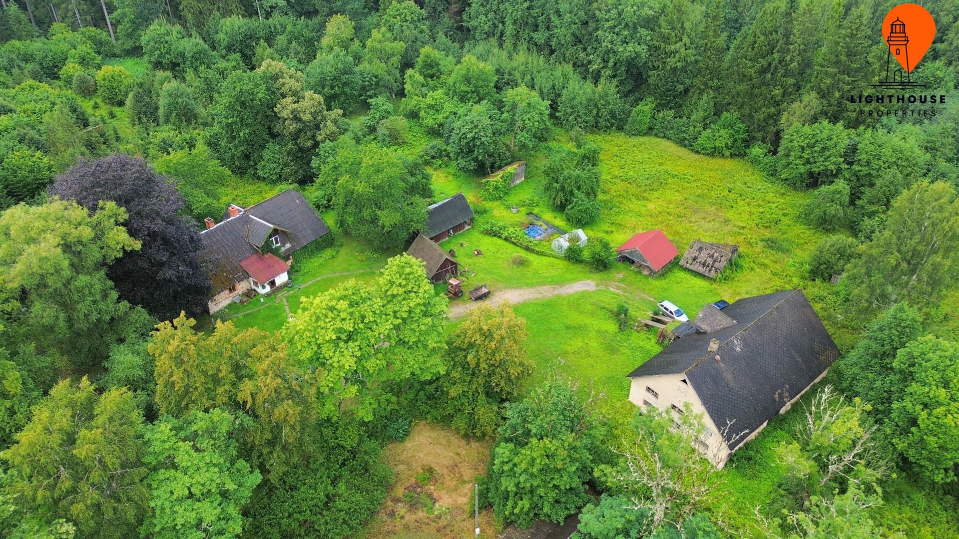 € 95000Piedāvājam iegādāties meža ieskautu lauku īpašumu “Brieži”, kas iekārtots pēc labākajām Kurzemes lauku viensētu tradīcijām. 1880.gadā celto pamatīga mūra dzīvojamo divu stāvu māju ar 240m2 dzīvojamo platību papildina palīgēku ansamblis, kurā ietilpst teju 200m2 plaša saimniecības ēka ar autodarbnīcu, noliktavu, kūti un neizbūvētu otro stāvu, kurā iespējams uzbraukt pa rampu. Īpašuma sastāvā ietilpst arī malkas šķūnis, terase, renovējama pirtiņa dīķa krastā un plaša nojume automašīnām.